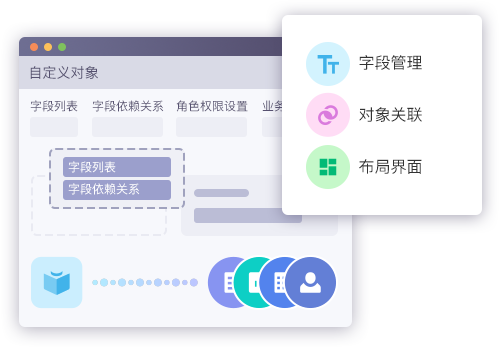 • 通過自定義字段,布局,權限,業務類型,輕松快速創建自定義對象,操作便捷,降低開發成本;